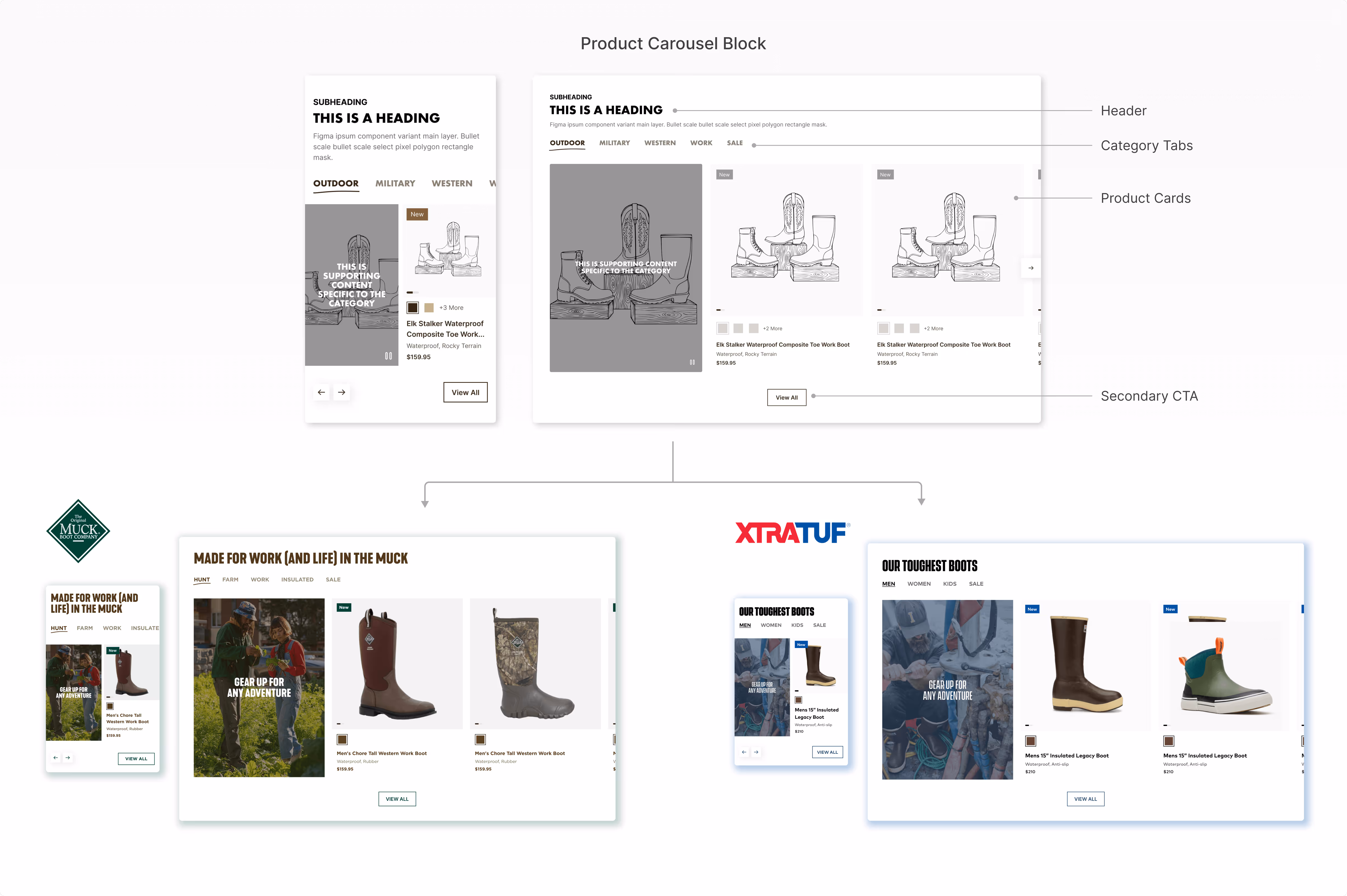 Rocky Brands’ legacy system made it difficult to update content, manage multiple brands, and maintain a consistent user experience. The new Shopify architecture provided the foundation for efficiency, but design-wise, we needed to ensure each brand’s personality came through.